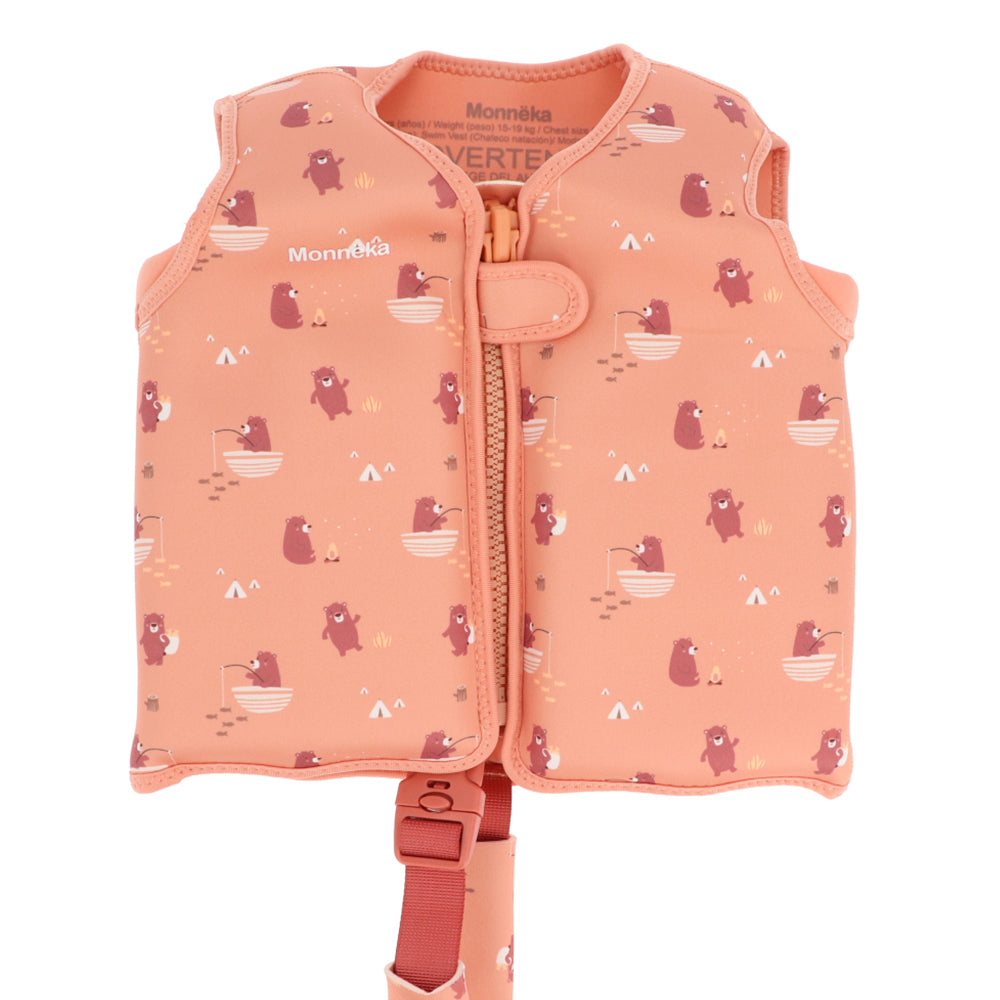 El chaleco de aprendizaje de Monnëka by Tutete, colección Verano 2026, está diseñado para acompañar a tu peque en sus primeros pasos en el agua con total confianza. Cómodo, seguro y evolutivo, permite que los peques ganen autonomía mientras disfrutan en la piscina o la playa.