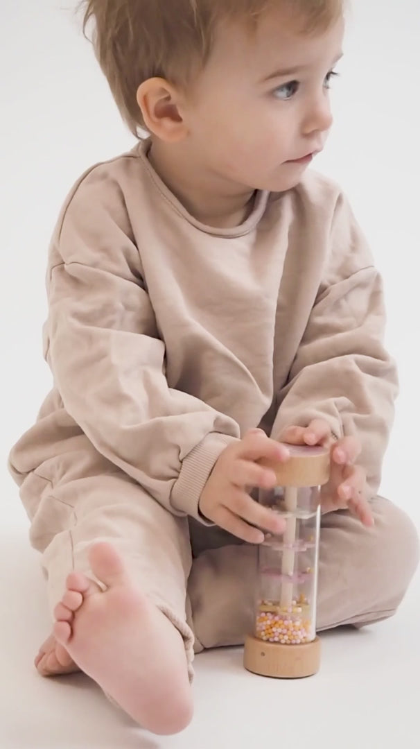 ¿Buscas un juguete que estimule los sentidos de tu peque mientras lo relaja y entretiene? El Palo de Lluvia Sensorial Panda de Saro es justo lo que necesitas. Inspirado en el suave sonido de la lluvia, este sonajero de madera es tan relajante como fascinante. Al girarlo, las bolitas multicolores descienden lentamente a través de compartimentos, creando un efecto visual y sonoro hipnótico que cautiva desde el primer momento.